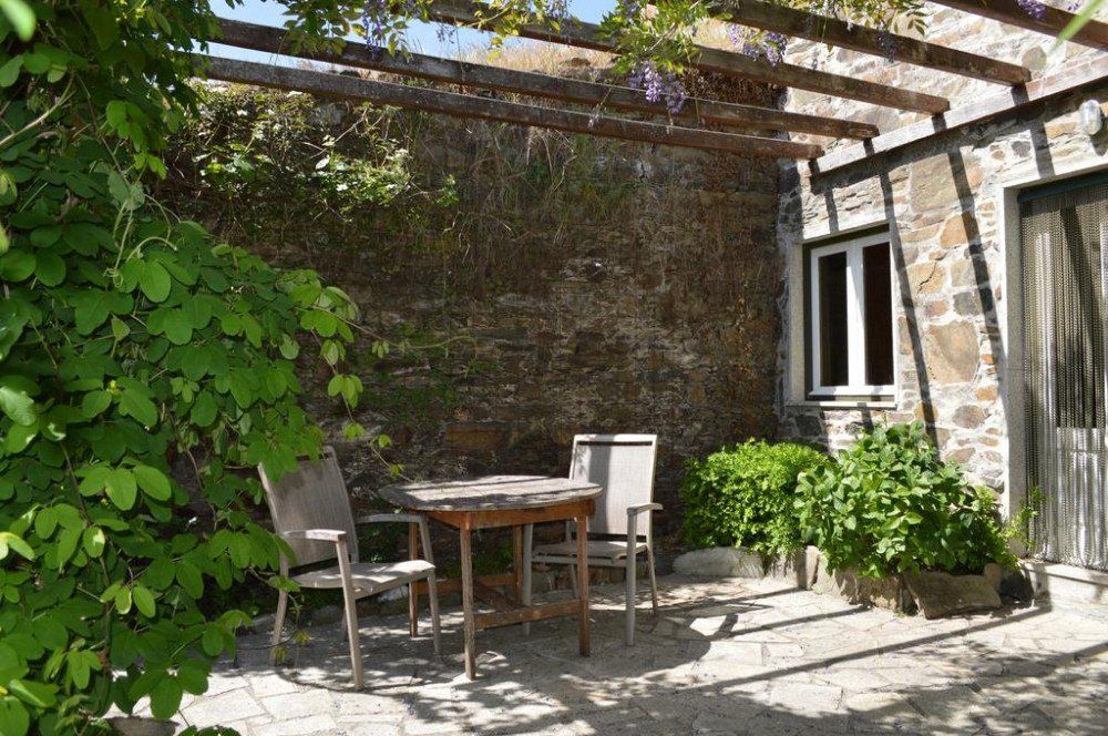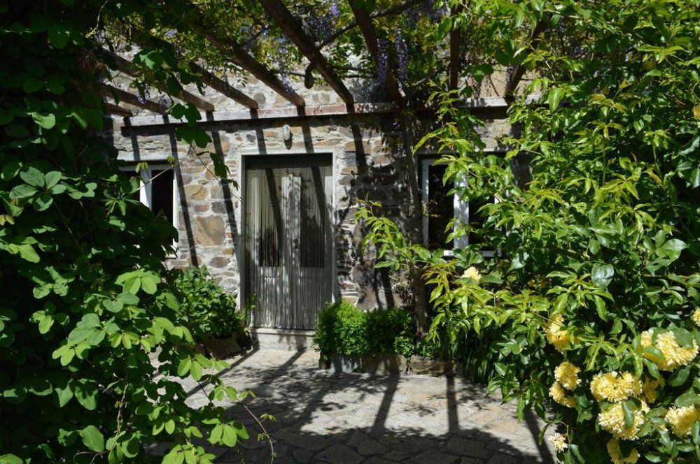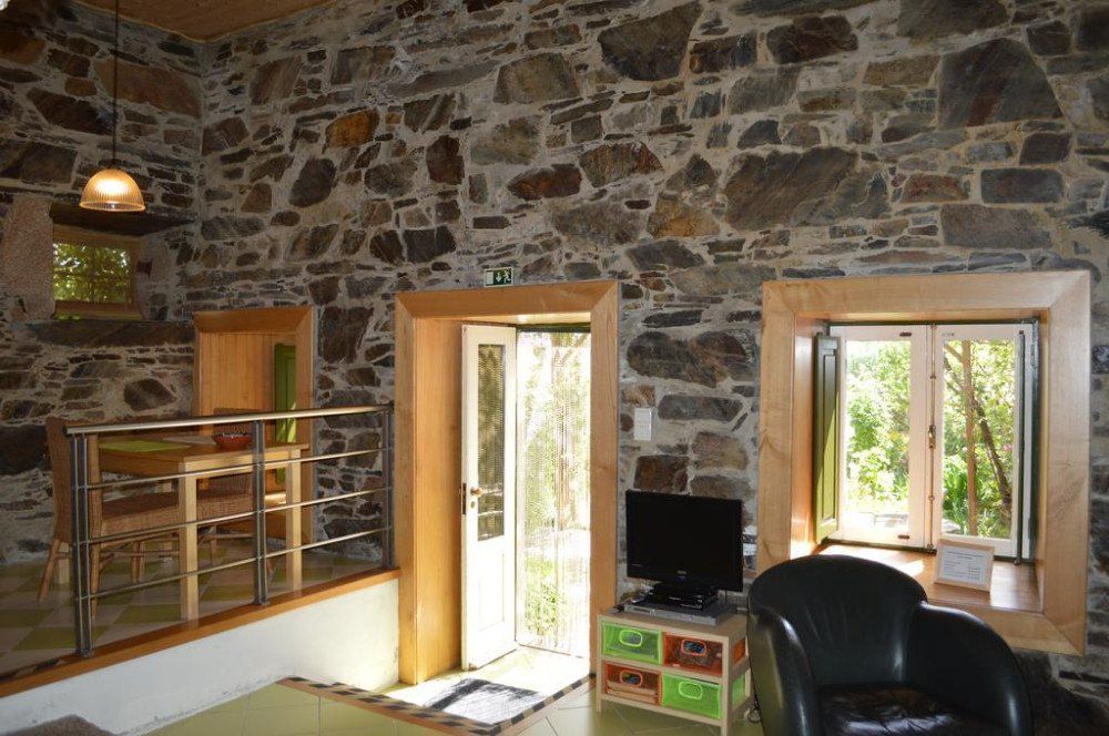 De natuurstenen buitenmuur van het huis is zichtbaar gebleven en boven het bed hangt een grote kroonluchter. De moderne badkamer heeft een wastafel, toilet en een ruime, luxe regendouche.